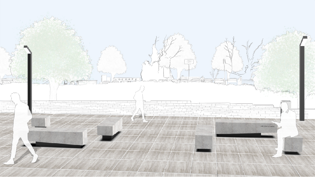 Il concept di progetto si sviluppa attraverso la rielaborazione dell’architettura romana, rivisitata in chiave moderna, ispirandosi all’architettura razionalista. Linee squadrate , forme geometriche semplici e contrasto dei bianchi e dei neri, con assenza di decorazioni percorrono tutta l’area di intervento, accompagnati da installazioni luminose dai toni freddi per creare atmosfere differenti che si sviluppano durante tutto l’arco della giornata.
